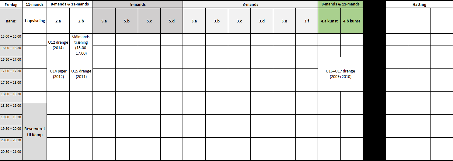 Her ses den til enhver tid gældende oversigt over trænings tider samt hvilke baner der er optaget.